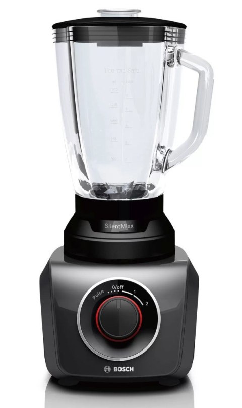 firmy Bosch miksuje, rozdrabnia i miksuje składniki szybko, niezawodnie i co najważniejsze, bardzo cicho. System redukcji szumów: przyjemne przetwarzanie składników za pomocą najcichszego blendera firmy Bosch. Cicha praca: przygotuj smaczne koktajle i posiekaj lód w całkowitym spokoju dzięki silnikowi 700/800 W. Ostrze EasyKlick gwarantuje doskonałe wyniki cięcia i można je łatwo wyjąć i wyczyścić. Łatwy w użyciu: pokrętło z regulacją prędkości i funkcją Pulse. Szklany kubek ThermoSafe (2,3 l): z łatwością przygotujesz gorące zupy lub mrożone napoje, całkowicie bezpiecznie.